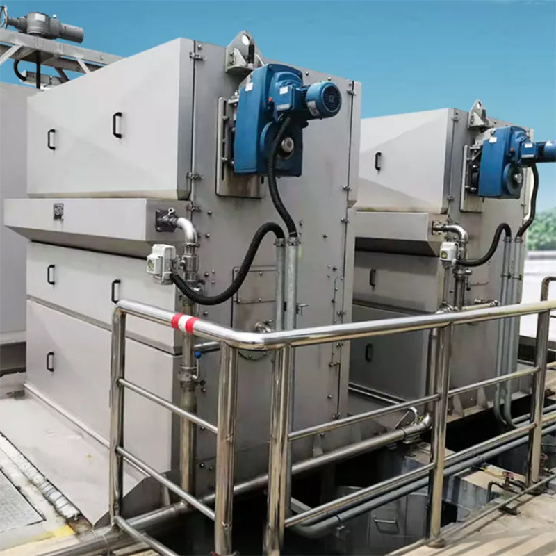 The geared motor drives the sprocket to rotate. The sprocket drives the mesh plate to rotate continuously; the sewage enters the grille from the water inlet, and passes through the mesh plate to overspeed. The water flows to the outside of the screen plate, and the dirt is left on the inner surface of the same plate. With the continuous rotation of the screen plate, it helps to the original part: the backwash system flushes the outside of the screen plate, and the dirt is washed to the receiving channel under the action of the flushing water. Feel free to check the flushing water from the well to the sewage outlet.